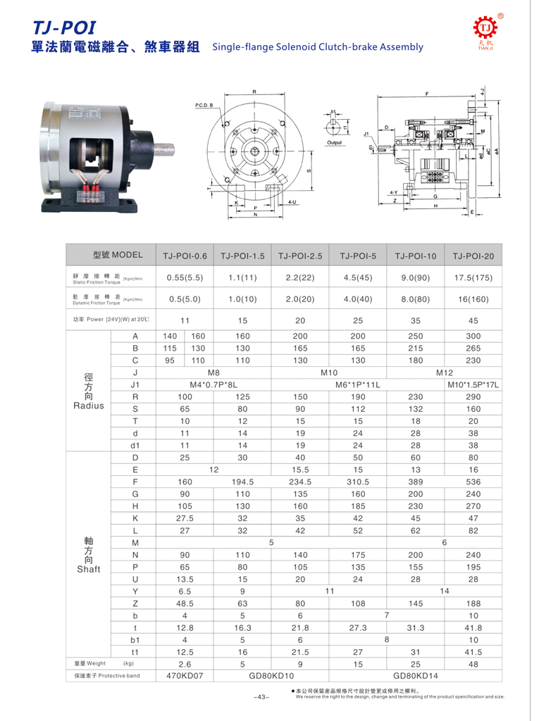 東莞天機傳動(臺灣天機牌)是生產單法蘭電磁離合剎車器,法蘭式電磁離合剎車器的廠家,全稱為POI型單法蘭電磁離合剎車器組合體,主要由一個TJ-A1型電磁離合器與一個TJ-B1型電磁制動器組合的集成組體。電磁離合剎車器應用廣泛、結構簡易、可高頻運轉、使用安全等。