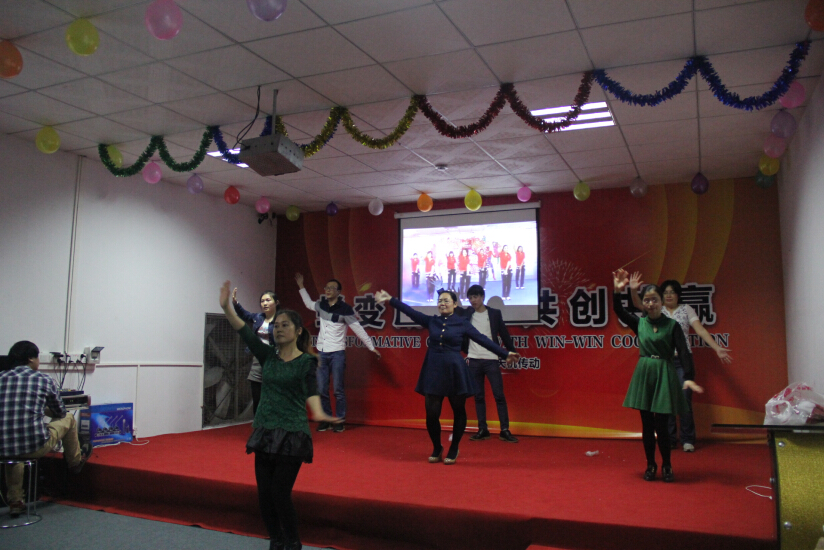 晚會(huì)中精彩節(jié)目不斷綻放,特約嘉賓書(shū)法大師陳老師給我們剖析《西游記》精彩判斷,個(gè)個(gè)聽(tīng)的聚精會(huì)神;帥哥們的演唱呼聲一片一片的;美女帥哥們精心準(zhǔn)備的舞蹈拉動(dòng)著大家的熱情;一個(gè)《賣蘋(píng)果》小品將大家的熱情帶到了高潮,笑聲、掌聲不斷;游戲環(huán)節(jié)生產(chǎn)和辦公室進(jìn)行了互動(dòng),同志們的熱情不減;國(guó)際友人過(guò)年,當(dāng)然是少不了我們外貿(mào)部的同事獻(xiàn)上的英文歌曲......