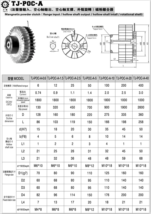 外旋轉(zhuǎn)磁粉離合器的接線很簡略的;便是只有2條線;接DC24V的直流電源(0.4A可調(diào))。