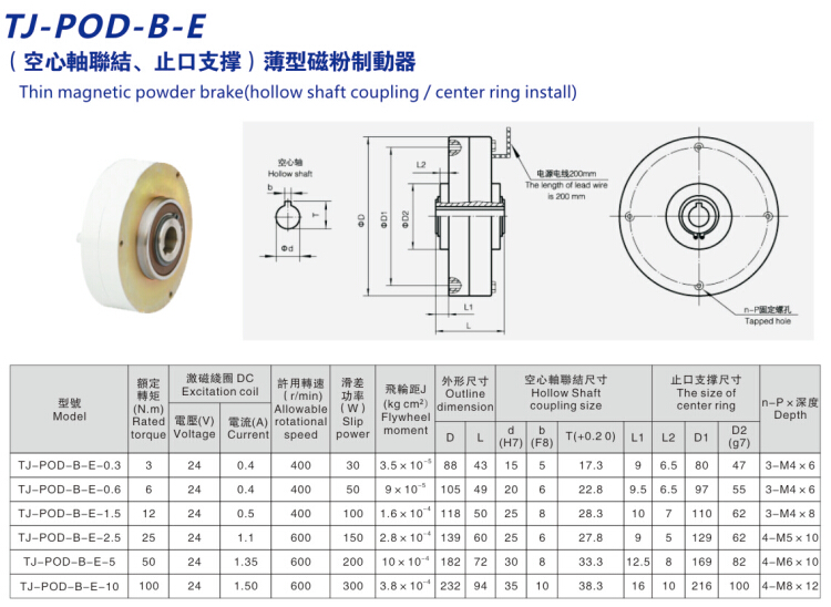下圖就是關(guān)于超薄型空心磁粉制動(dòng)器剎車器選型參數(shù):