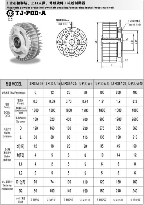 中空軸型磁粉式制動器剎車器選型參數(shù)表